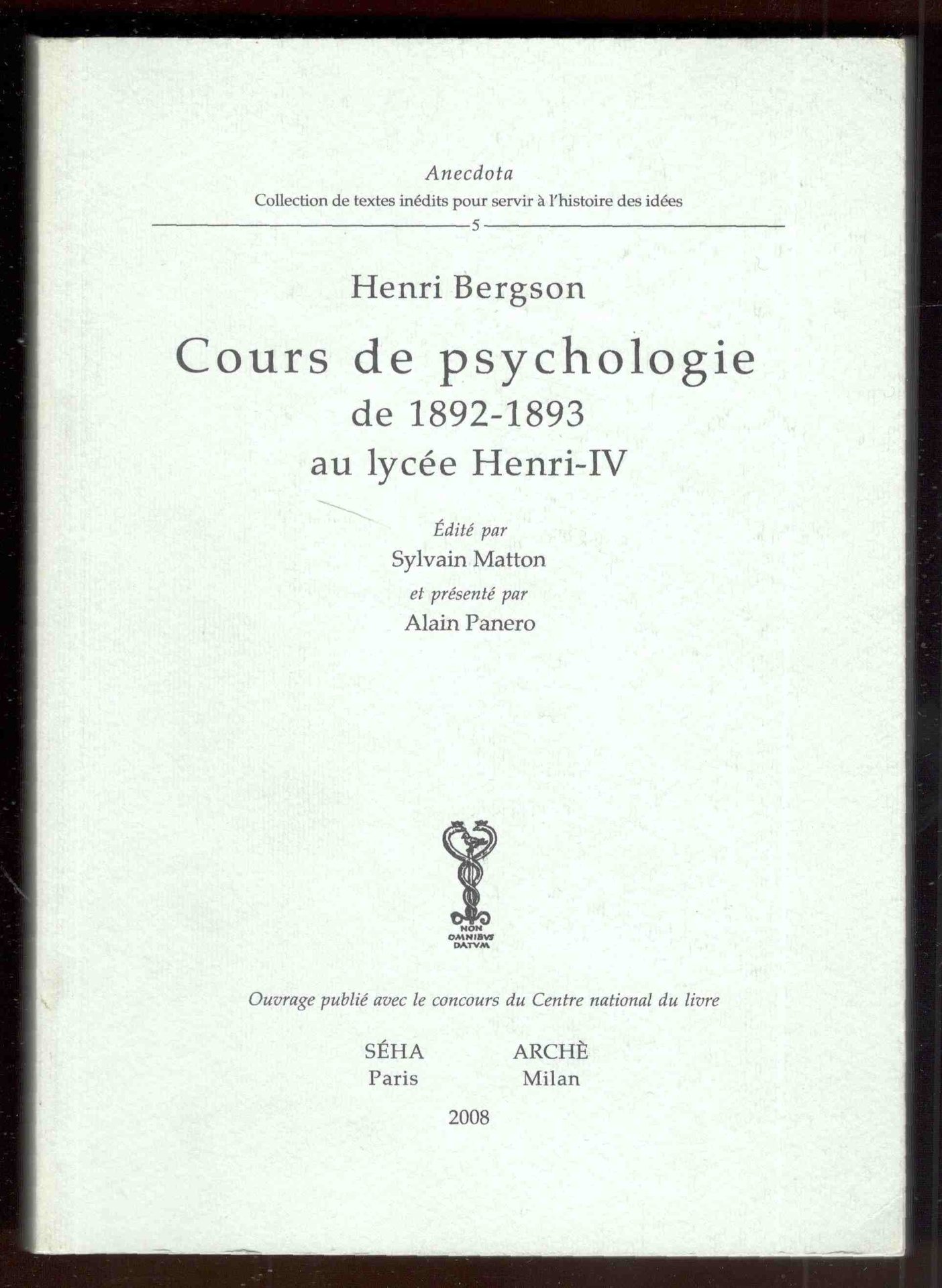 Cours de psychologie de 1892-1893 au lycée Henri-IV. Edité par Sylvain Matton et présenté par Alain Panero