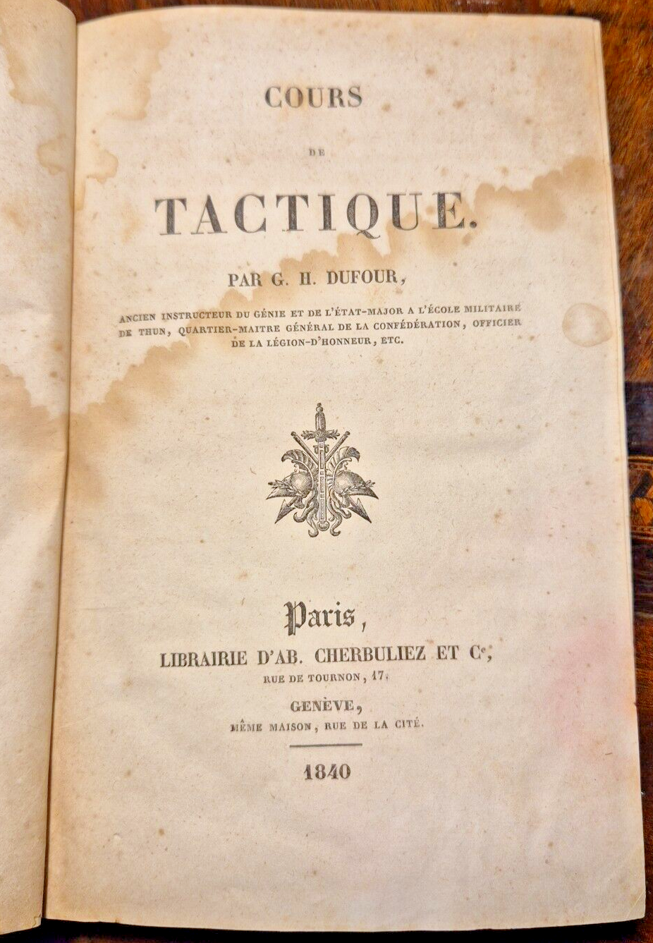 COURS DE TACTIQUE di Guillaume Henri Dufour 1840 Cherbuliez Libro antico militar