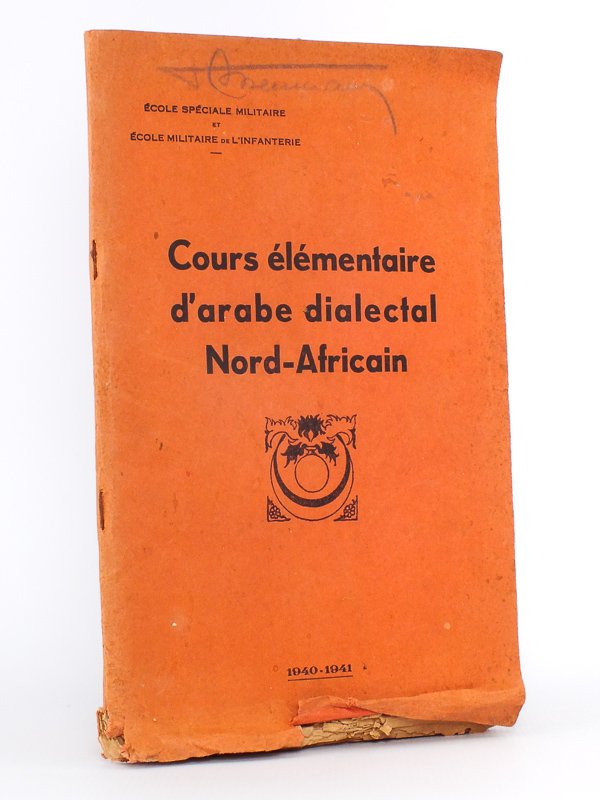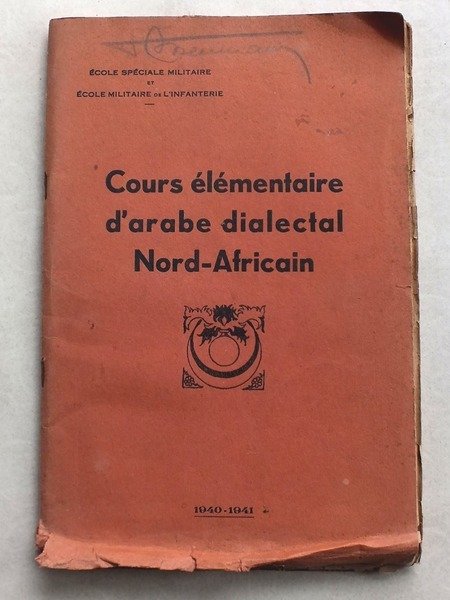 1 vol. in-8 br., école spéciale militaire, 1940-1941, 75 pages Rare exemplaire de ce cours d'arabe dialectal à l'usage des officiers. Etat satisfaisant (fort. frotté en queue, nombreuses annotations au crayon)