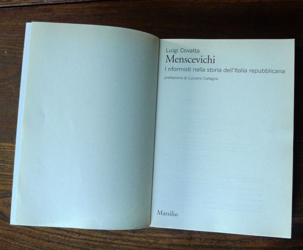 Luigi Covatta,MENSCEVICHI.I riformisti nella storiadell'Italia repubblicana.Prefazione di Luciano Cafagna.Marsilio Editori, Venezia 2005,prima edizione: marzo 2005,brossura, 21,5x15,5 cm., pp.293,collana SAGGI,ISBN: 88-317-8648-2,peso: g.500
