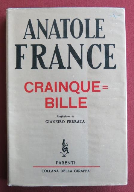 Prefazione di Giansiro Ferrata. Traduzione di Mario Fanoli. Parenti Editore, 1956. Firenze Collana della Giraffa, Vol. XIII. In 8vo, pp. XV, 136, leg. in t. tela azzurra con sovrac. in carta. Il racconto di un caso giudiziario emblematico a fronte di una giustizia ridicola, sciocca e vendicativa, di cui fu vittima il bravuomo e venditore ambulante Crainquebille. Il racconto venne pubblicato in due articoli successivi sul “Figaro”, il 21 novembre 1900 e il 16 gennaio 1901. La versione teatrale, rappresentata il 28 marzo 1903 al Théâtre de la Renaissance, ebbe un grande successo di pubblico e di critica. Un breve e indiscusso capolavoro della letteratura. Minime imperfezioni della sovrac., conservazione ottima.