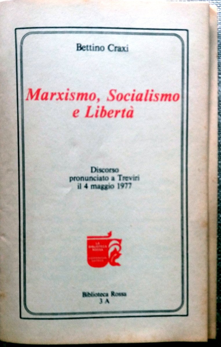 CRAXI MARXISMO SOCIALISMO E LIBERTA' 1977 TREVIRI BIBLIOTECA ROSSA ST MARXISTI
