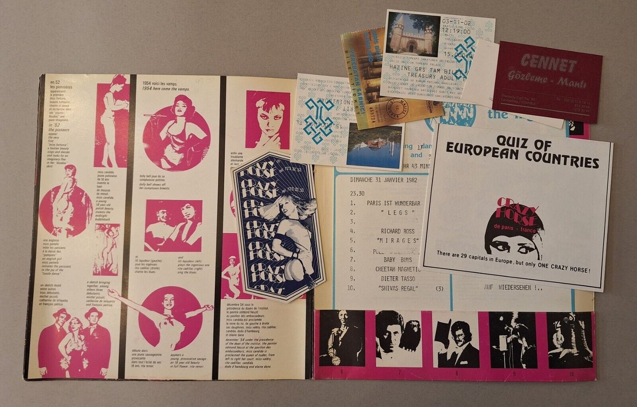 CRAZY HORSE DE PARIS JUBILEE SHOW BROCHURECm. 24 x 24, pag. 8, legatura editoriale con graffetta, ill. a colori. Allegati biglietti e ephemeraIn ottime condizioni, lievissimi segni del tempo.