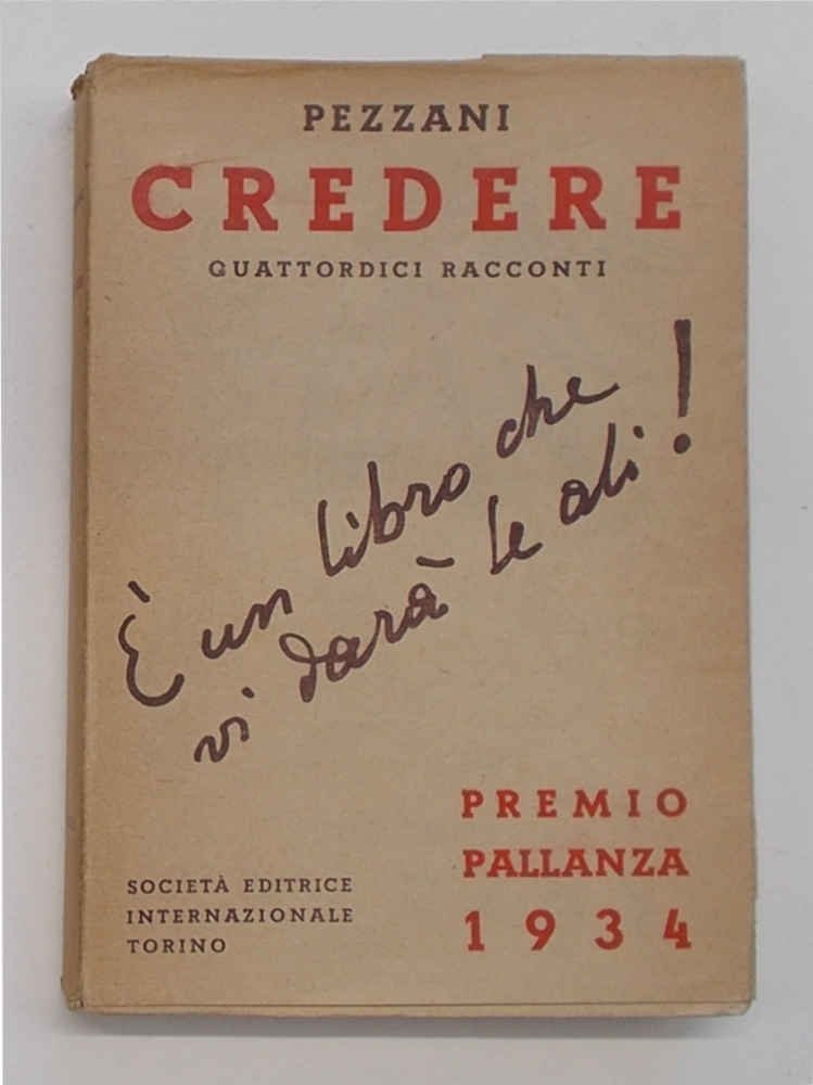 In 8° (cm. 19,5 x 13,5); pagg. 211; con alcune illustraz. di Vittoria Cocito Buratti su tavole n.t.; leggera cartonatura originale figurata e sovracopertina a due colori con il motto "E' un libro che vi darà le ali!" e "Premio Pallanza 1934". Piccola firma. VG. ** Seconda edizione 5° migliaio, nello stesso anno della prima. Ottimo e fresco.