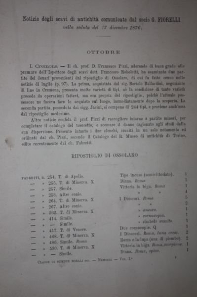 CREMONA NOTIZIE DEGLI SCAVI DI ANTICHITA' 1876