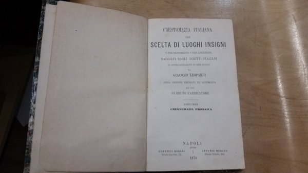 crestomazia italiana cioe' scelta di luoghi insigni o per sentimento o per locuzione raccolti dagli scrittori italiani di autori eccellenti di ogni secolo da giacomo leopardi