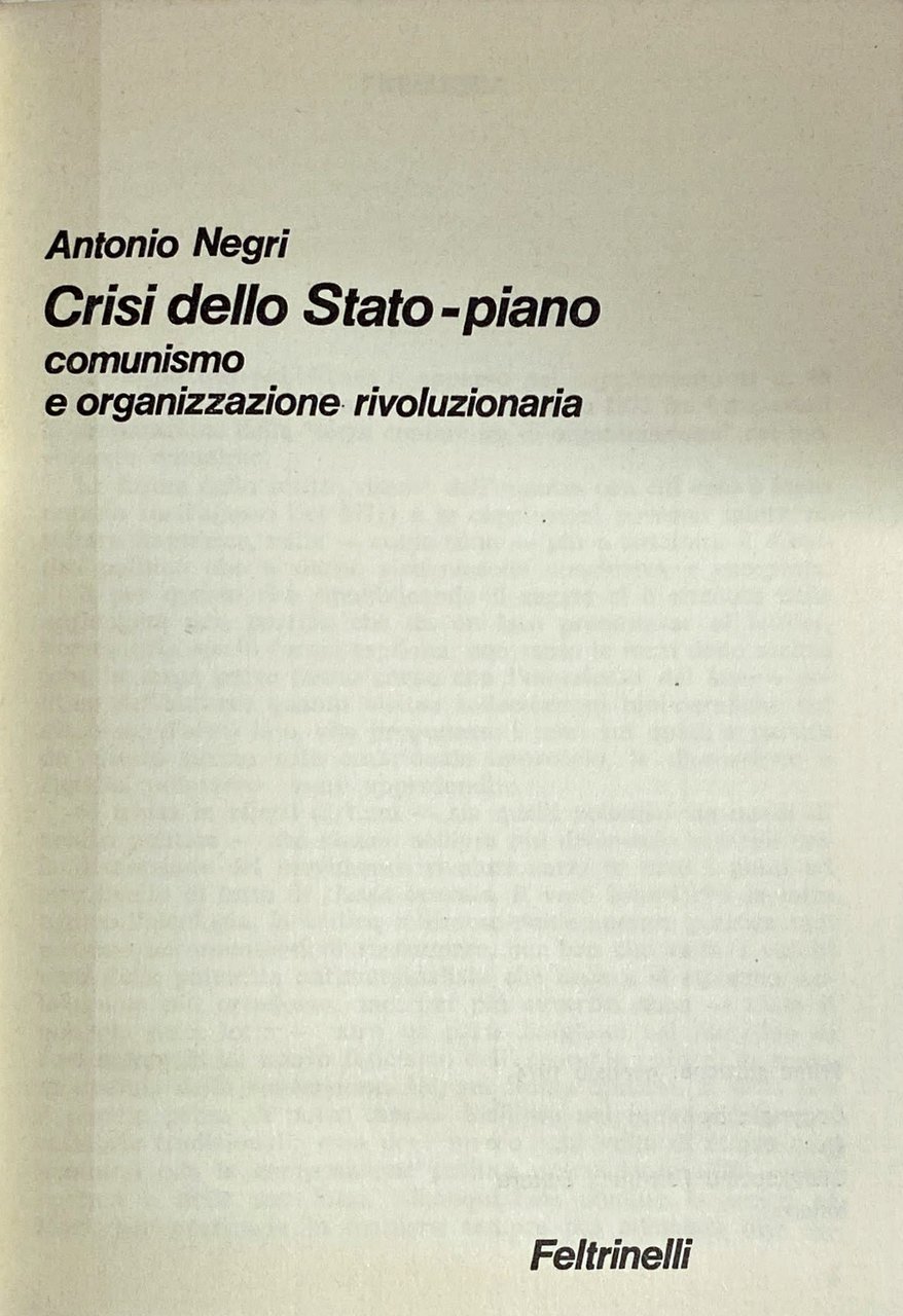 Titolo: Crisi dello Stato-piano. Comunismo e organizzazione rivoluzionaria