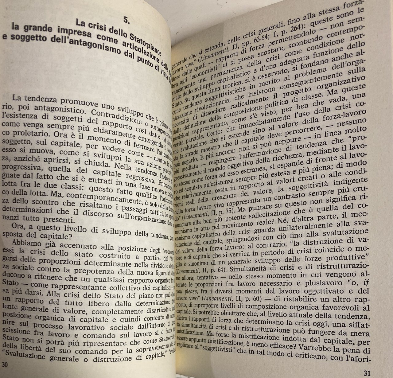5 La crisi dello Stato-piano: la grande impresa come articolazione della tendenza e soggetto dell'antagonismo dal punto di vista capitale