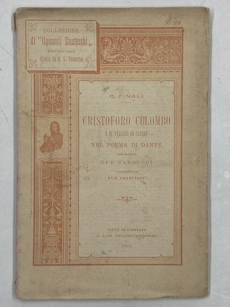 Cristoforo Colombo e il viaggio di Ulisse nel Poema di Dante. Saggio d’interpretazione e carteggio tra l’autore e F. Tarducci con prefazione di Giovanni Franciosi.