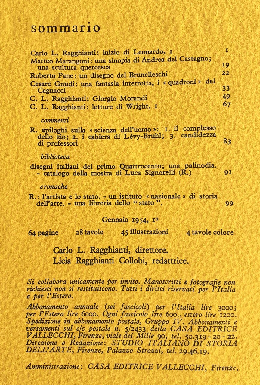 Critica d'arte. Nuova rivista n^ 1 diretta da Carlo l. Ragghianti 1954