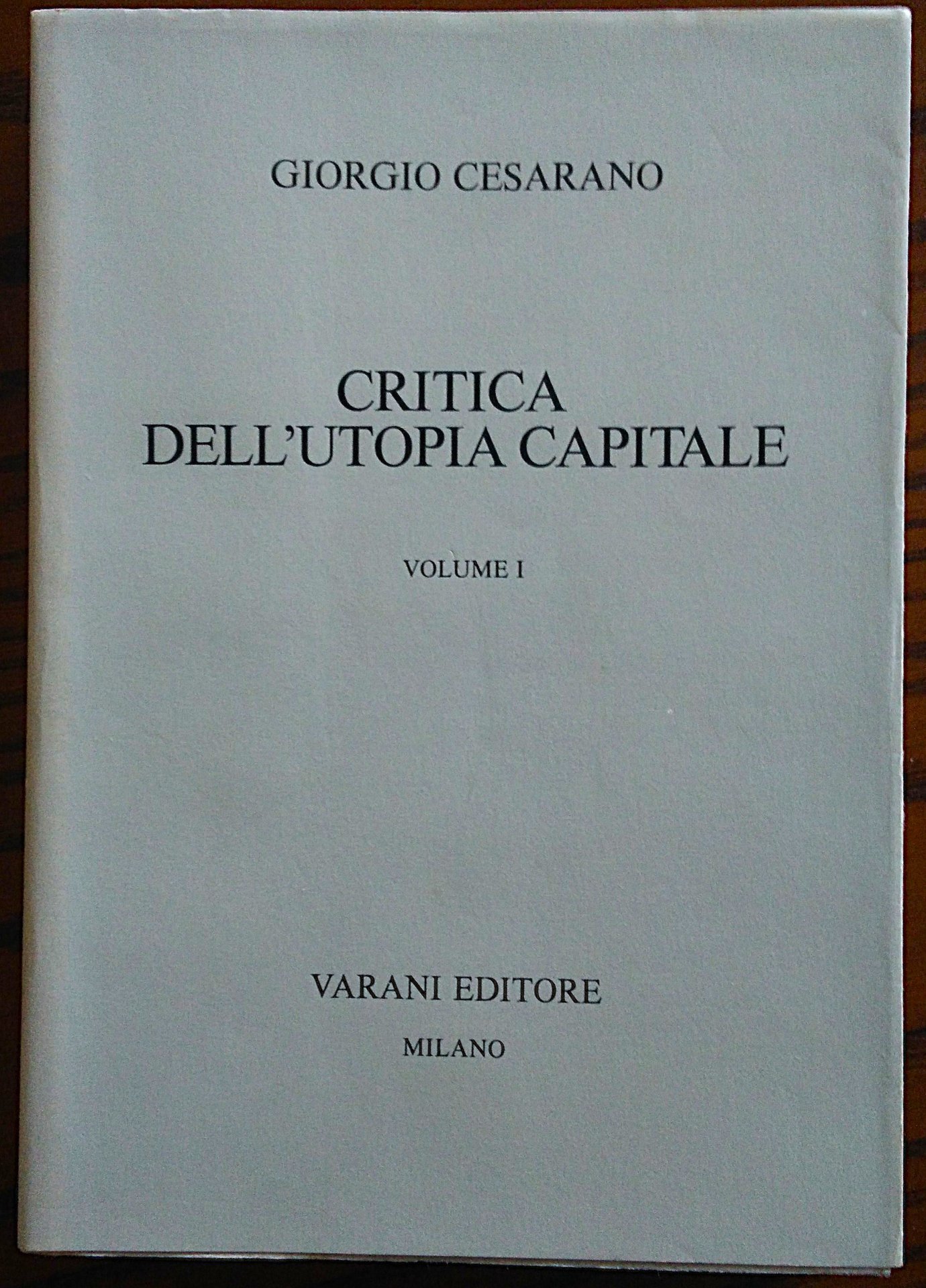 Critica Dell'utopia Capitale. Volume I.
