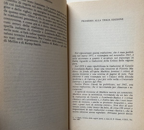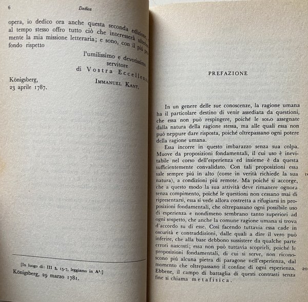 Soggetti: Filosofia classica tedesca, Epistemologia, Teoria della Conoscenza, Studi kantiani, Edizioni critiche, Critica della Ragion Pura, Teoria dei giudizi, Estetica trascendentale, Settecento, Germania, Idealismo Tedesco, Illuminismo, Dottrina trascendentale degli elementi, Analitica trascendentale, Dialettica, Giudizio, Soggetto, Esperienza, Empirista, Giudizi sintetici a priori universali e fecondi, Sensibilità, Spazio, Tempo, Geometria, Aritmetica, Intelletto, Realtà intellegibile, Categorie, Sensi, Metafisica, Psicologia razionale, Cosmologia, Teologia razionale, 1781, 1787, Accademia delle Scienze di Berlino, Editio princeps, Giovanni Gentile, Giuseppe Lombardo Radice, Vittorio Mathieu, Pietro Chiodi, Scritti kantiani, Bibliografia, Consultazione, Riferimento, Note critiche, Indici, Lessico, Wolfgang Ratke, Mellin, Kemp Smith, Interpretazione, Barni, Tremesaygues, Pacaud, Meiklejohn, Max Muller, Prefazione, Canone, Metodo, Analitica, Proposizioni fondamentali, Concetti, Interferenze dialettiche, Logica, Laas, Leclair, Bauch, Paulsen, Riehl, Noiré, Caird, Fischer, Cantoni, Cassirer, Martinetti, De Vleeschhauwer, Wille, Cornelius, Commenti, Citazioni, Traduzioni, Vaihinger, Erdmann, Gorland, Grillo, Meyer, Schopenhauer, Messer, Schultz, Goldschimdt, Aristotele, Leibniz, Locke, Hume, Hobbes, Epicuro, Cartesio, Wolff, Bacone, Platone, Copernico, Zenone, Galilei, Mendelssohn, Mairan, Haller, Talete, Torricelli, Newton, Berkeley, Bonnet, Baumgarten, Democrito, Diogene Laerzio, Speculazione, Scienza Universale, Anima, Mondo, Dio, Criticismo, Rivoluzione scientifica, Matematica, Fisica, Sapere, Possibilità, Immagine del mondo, Fenomeno, Sensibilità, Deduzione, Formazione delle idee, Rivoluzione Copernicana, Unità, Realtà, Sostanza, Accidente, Impossibilità, Pluralità, Negazione, Causa ed effetto, Esistenza, Inesistenza, Totalità, Limitazione, Azione reciproca, Agente, Paziente, Necessità, Contingenza, Intuizione sensibile, Scienze, A posteriori, Dogmatismo, Empirismo, Razionalismo, Universalità, Fecondità, Pensiero metafisico, Marcus Herz, Kritik der Urteilskraft, Lezioni universitarie, Königsberg, Io penso, Noumeno, Libri universitari Vintage usati fuori catalogo, XVIII secolo, Libri rari, Gemuth, Zelo Torbov, Erscheinung, Apparenza, Collezionismo, Paralogismi, Classical German Philosophy, Epistemology, Theory of Knowledge, Kantian Studies, Critical Editions, Critique of Pure Reason, Judgments, Transcendental Aesthetics, Eighteenth Century, Germany, German Idealism, Enlightenment, Transcendental Doctrine, Elements, Transcendental Analytic, Dialectic, Judgment, Subject, Experience, Empiricist, Universal and fruitful synthetic judgments a priori, Sensitivity, Space, Time, Geometry, Arithmetic, Intellect, Intelligible reality, Categories, Senses, Metaphysics, Rational psychology, Cosmology, Rational theology, Berlin Academy of Sciences, Kantian writings, Bibliography, Consultation, Reference, Critical notes, Indexes, Lexicon, Interpretation, Preface, Canon, Method, Analytical, Fundamental propositions, Concepts, Dialectical interferences, Comments, Quotations, Translations, Aristotle, Epicurus, Descartes, Bacon, Plato, Copernicus, Zeno, Thales, Democritus, Diogenes Laertius, Speculation, Universal Science, World, God, Criticism, Scientific revolution, Mathematics, Physics, Knowledge, Possibility, Image of the world, Phenomenon, Sensitivity, Deduction, Formation, Ideas, Copernican revolution, Unity, Reality, Substance, Accident, Impossibility, Plurality, Negation, Cause, Effect, Existence, Non-existence, Wholeness, Limitation, Reciprocal action, Agent, Patient, Necessity, Contingency, Sensible intuition, Sciences, Dogmatism, Empiricism, Rationalism, Universality, Fertility, Metaphysical thought, University lectures, Königsberg, I think, Noumenon, Out-of-print University books, 18th century, Rare books, Appearance, Collecting, Paralogisms