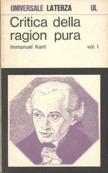 5. ed. 2 v. (XXIX, 775 p.) ; 18 x 11 cm. Universale Laterza. Prefazione di Giovanni Gentile. Titolo originale dell'opera: Kritik der reinen Vernunft. Traduzione di Giovanni Gentile e Giuseppe Lombardo-Radice. Glossario a cura di Vittorio Mathieu. Brossura editoriale, coperta in cartoncino flessibile illustrata a colori. Titolo impresso al piatto e al dorso. Codice libreria 1201.