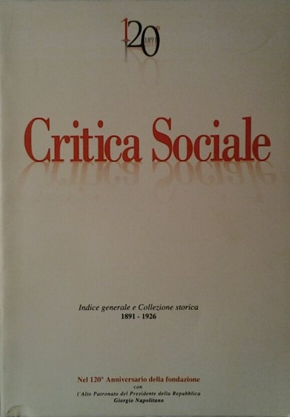CRITICA SOCIALE. - Indice generale 1891 - 1926.