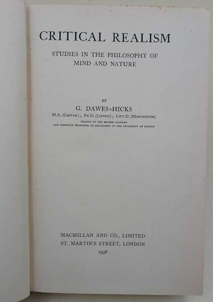 CRITICAL REALISM- STUDIES IN THE PHILOSOPHY OF MIND AND NATURE(1938)