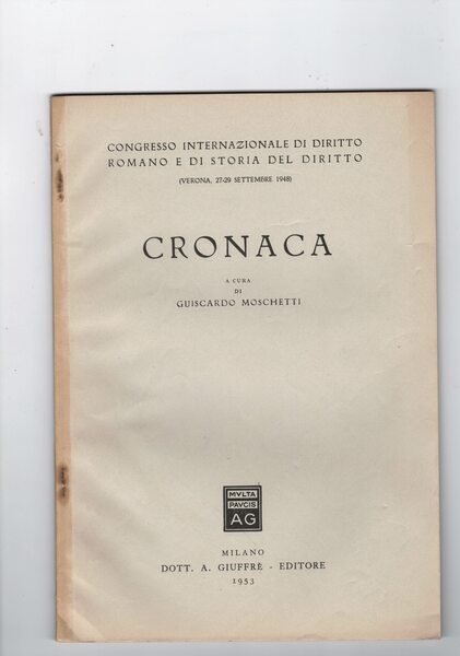 Cronaca ( Congresso internazionale di diritto romano e di storia del diritto - Verona, 27/29 settembre 1948).