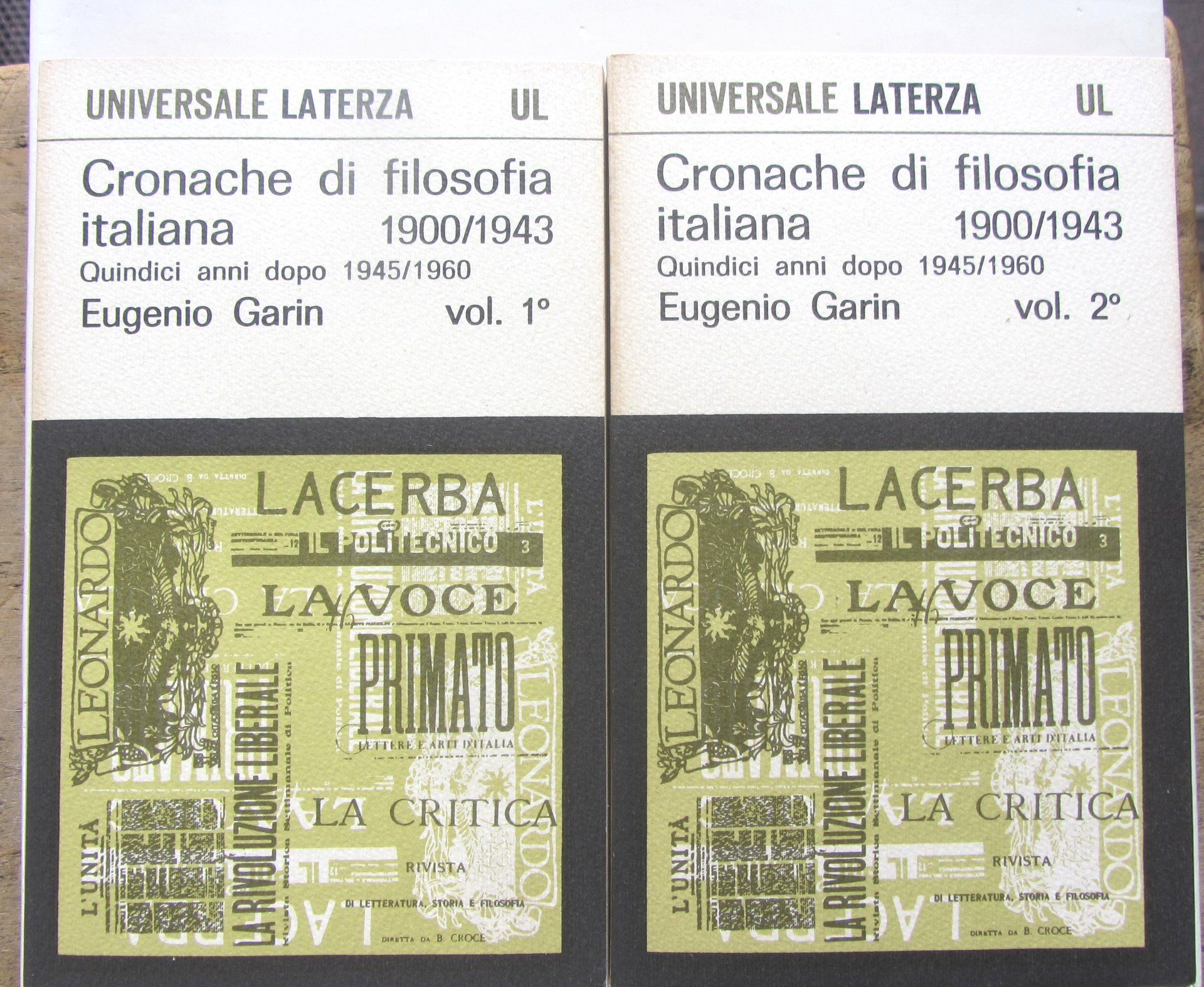 CRONACHE DI FILOSOFIA ITALIANA 1900/1943, Vol. I e II; in appendice QUINDICI ANNI DOPO 1945/1960.,