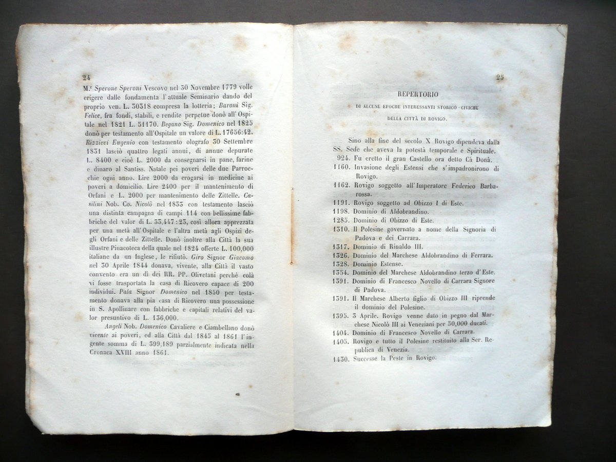 Cronache di Rovigo dal 1844 a Tutto il 1864 NicolÚ Biscaccia Prosperini 1865