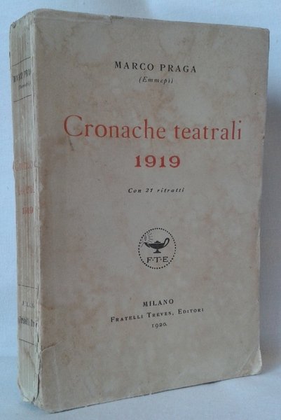 Volume in 8, brossura editoriale, titolo al piatto ed al dorso, sguardie, occhiello, frontespizio, 275 pp., 21 tavole ft. con ritratti fotografici d'attori e gente di teatro, indici delle commedie, drammi e ritratti contenuti. L'opera di critico che Praga ebbe a svolgere per diverse testate qui raccolta. Si fa riferimento all'annata teatrale 1919, presentando le pieces da lui recensite. Splendida l'iconografia con i ritratti degli autori e di particolari momenti salienti della loro attivit. Il quadro della vita teatrale italiana, il teatro drammatico, aneddoti, vicende, una miriade di gustosissime notizie sulla totalit dei nomi del panorama artistico italiano. In barbe, alcuni quinterni slegati, ma completo ed in buono stato.