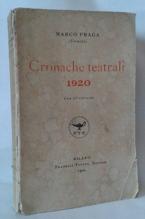 Volume in 8, brossura editoriale, titolo al piatto ed al dorso, sguardie, occhiello, frontespizio, 271 pp., 28 tavole ft. con ritratti fotografici d'attori e gente di teatro, indici delle commedie, drammi e ritratti contenuti. L'opera di critico che Praga ebbe a svolgere per diverse testate qui raccolta. Si fa riferimento all'annata teatrale 1920, presentando le pieces da lui recensite. Splendida l'iconografia con i ritratti degli autori e di particolari momenti salienti della loro attivit. Il quadro della vita teatrale italiana, il teatro drammatico, aneddoti, vicende, una miriade di gustosissime notizie sulla totalit dei nomi del panorama artistico italiano. Lievi bruniture della carta, in buono stato.