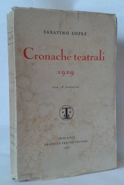 Volume in 8, brossura editoriale, titolo al piatto ed al dorso, occhiello, frontespizio, 251 pp., 18 tavole fotografiche ft., indici. Interessante raccolta delle cronache teatrali dell'anno 1929, arricchita dalle belle illustrazioni delle opere e dai ritratti dei pi importanti interpreti e commediografi. Lieve brunitura e rara fioritura della carta, di piacevole lettura.