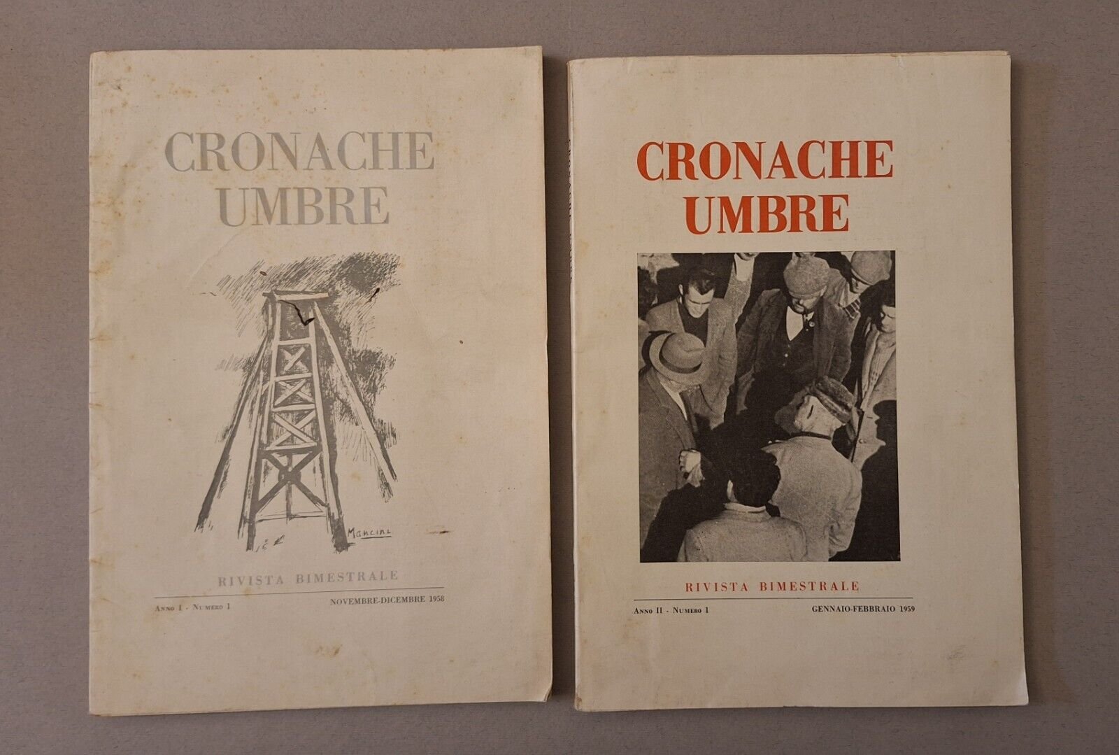CRONACHE UMBRE RIVISTA BIMESTRALE ANNO 1° N. 1 E ANNO 2° N. 1In 8°, legatura editoriale, 2 volumi, copertina illustrata.In ottime condizioni, lievissimi segni alla copertina.