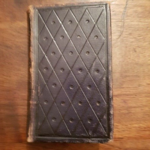 In-32° (cm. 10,5 x 6,5), pp. XXXI, 435, bella legatura in piena pelle, al dorso titolo in oro, ai piatti decoro a scacchiera romboidale con punto al centro di ogni rombo, il tutto impresso a secco.