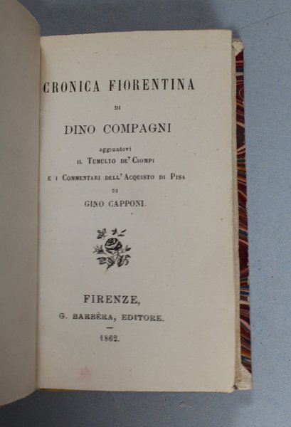 Cronica fiorentina. Aggiuntovi Il tumulto de' Ciompi e i Commentari dell'acquisto di Pisa di Gino Capponi.
