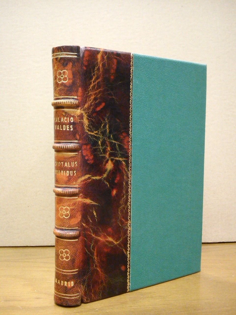 [PRIMERA EDICION].- Madrid: Casa Editorial de Medina, [s.a., ca. 1900].- 3 Libros en un solo Volumen; con 156 p. en numeración contínua; 8º menor (17 x 11,5 cm.); Media Piel valenciana, lomo dorado y rueda dorada en tapas.- Esta tres obras fueron editada conjuntamente en un mismo volumen. La de Palacio Valdés, "Crotalus horridus", es la primera edición. RARO.* LITERATURA Y FILOSOFÍA ESPAÑOLAS DE LOS SIGLOS XIX-XXI Y SU HISTORIA EN GENERAL