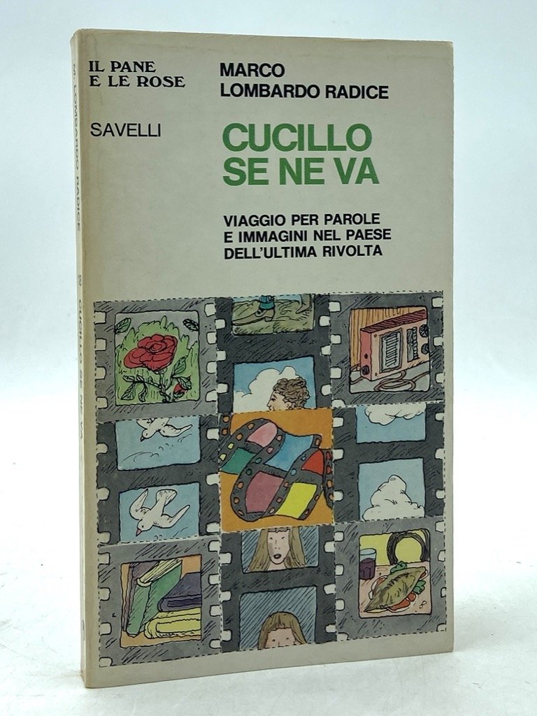 Brossura editoriale illustrata, cm 18.5 x 11, pp 158 (2). Il pane e le rose, numero 18. Buono stato. Sorta di sceneggiatura per un film mari realizzato, Cucillo se ne va è il secondo libro di Marco Lombardo Radice, che solo due anni prima aveva scosso l’Italia con l’enorme successo di Porci con le ali, scritto con Lidia Ravera e titolo inaugurale della collana il pane e le rose. Come in quel primo romanzo, la copertina è affidata a Pablo Echaurren.