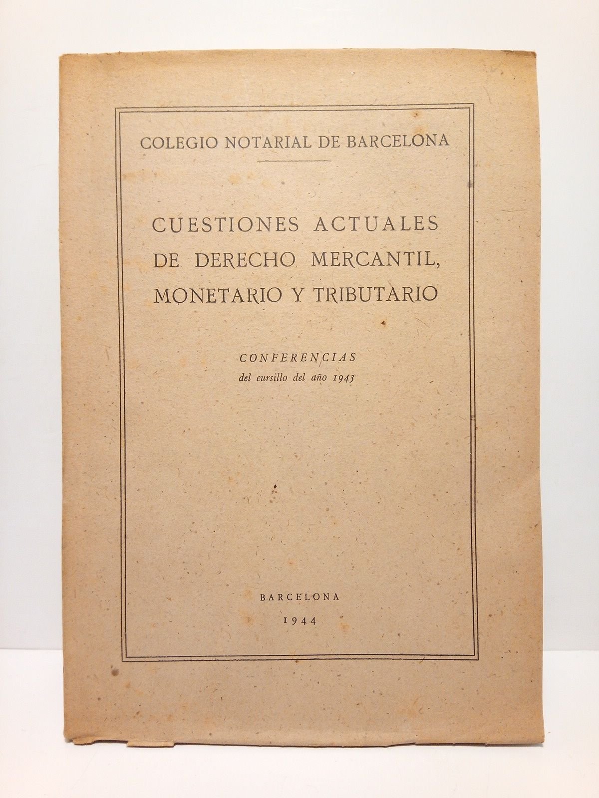 Barcelona:Colegio Notarial de Barcelona, 1944.- 227 p.; 4º mayor (25,4 x 17,7 cm); Conservando todas sus barbas; Rústica Ed.* Excelente estado. HACIENDA, DERECHO FISCAL, MERCANTIL, BOLSA, BANCA, SEGUROS.