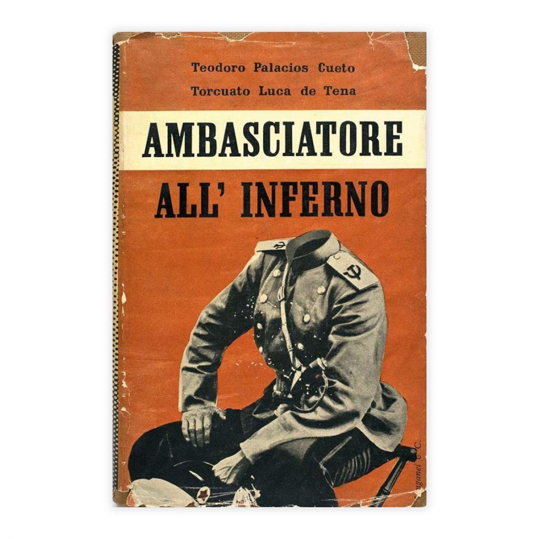 Autori: Cueto & De Tena Titolo: Ambasciatore all'inferno Edizione: Longanesi & Co. - Milano 1956 Dimensioni: 13 x 19 cm c.a. Pagine: 299 Copertina: Cartonato con sovracopertina Condizioni: Buone come da foto - Sovracopertina strappata sui bordi