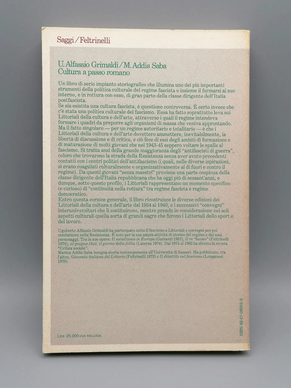 Cultura a Passo Romano Libro Alfassio Grimaldi Addis Saba Feltrinelli Littoriali