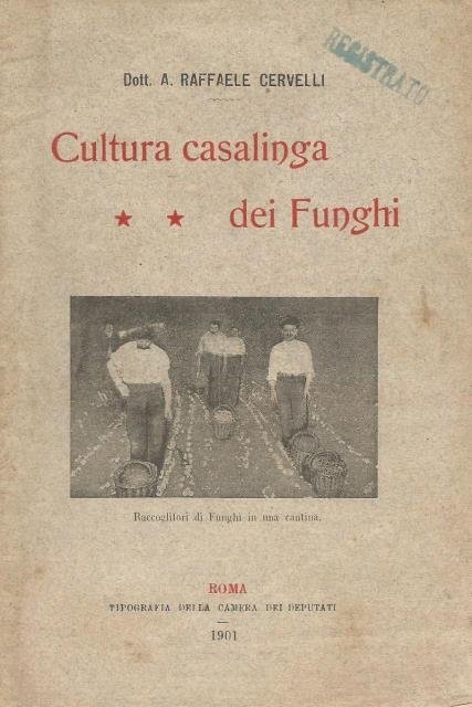 Roma, Tipografia della Camera dei Deputati, 1901. In 12esimo, pp. 13, bross. edit. in carta con ill. in copertina e tit. in rosso. Insolito opuscolo che spiega come coltivare funghi nella propria abitazione eliminando in questo modo il pericolo di rimanerne avvelenati. Coeve sottolineature a matita rossa e blu nel testo ma buona conservazione. .