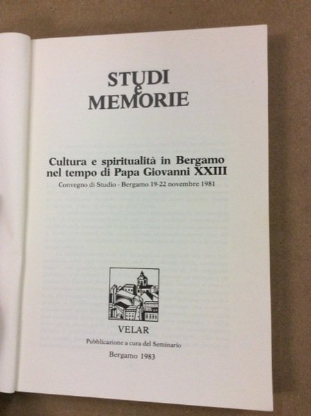 CULTURA E SPIRITUALITA' IN BERGAMO NEL TEMPO DI PAPA GIOVANNI XXIII. CONVEGNO DI STUDIO - BERGAMO 19 - 22 NOVEMBRE 1981.