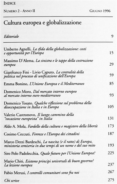 CULTURA EUROPEA E GLOBALIZZAZIONE - Quademi della Fondazione Piaggio, n. 2/1996.