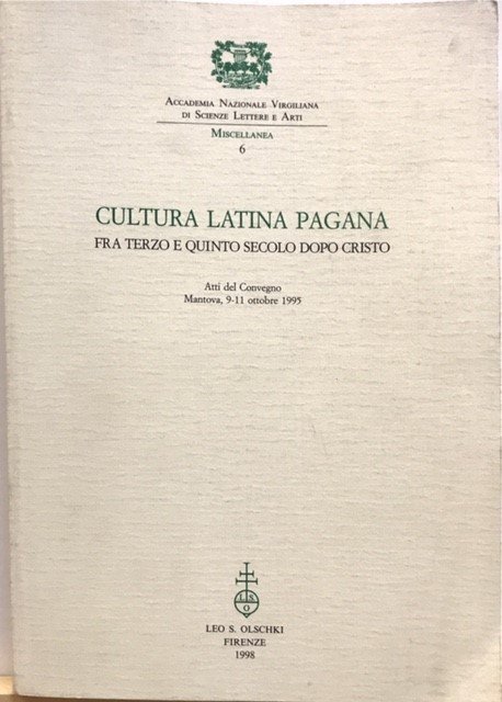 CULTURA LATINA PAGANA. FRA TERZO E QUINTO SECOLO DOPO CRISTO. Atti del Convegno Mantova, 9-11 ottobre 1995.,