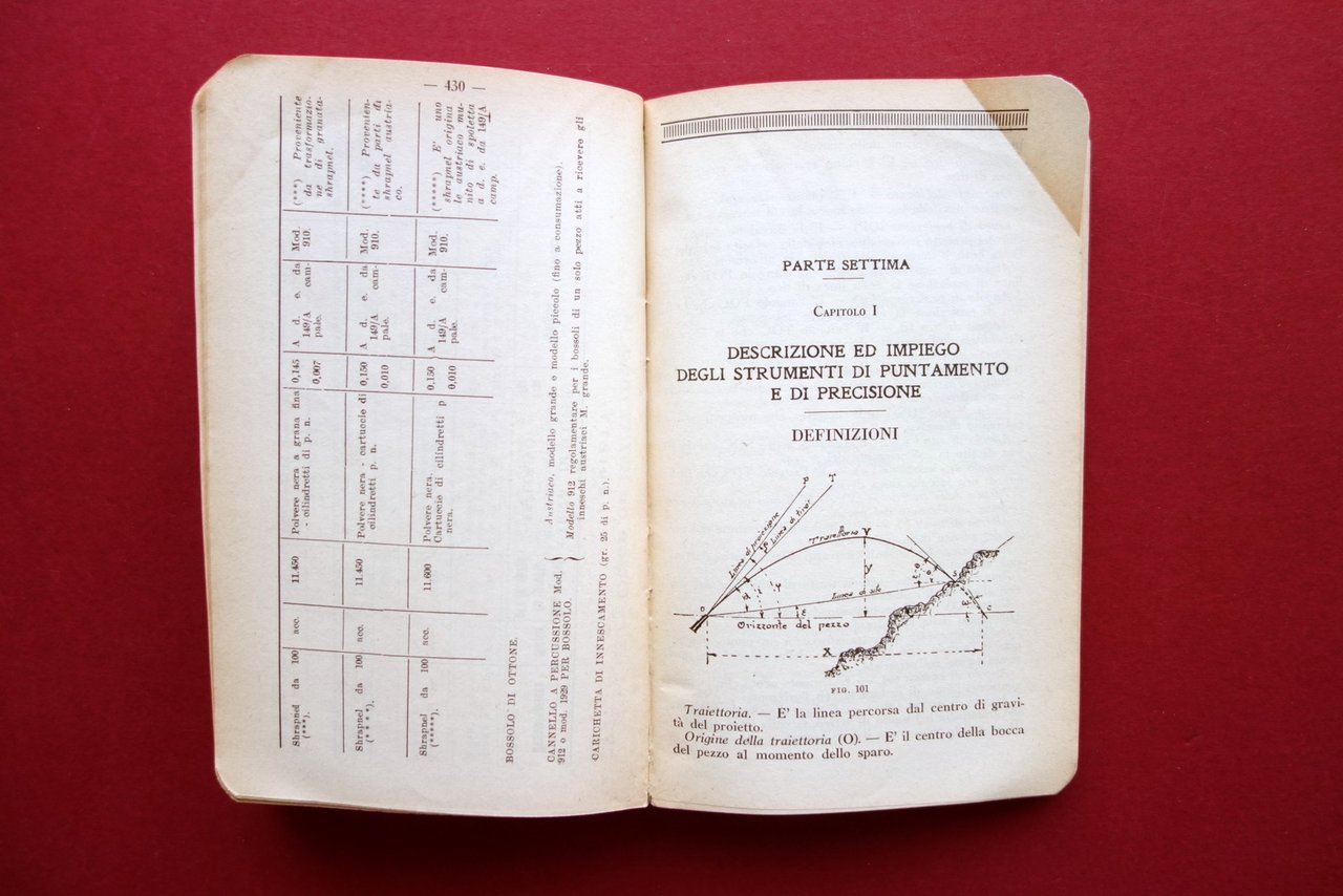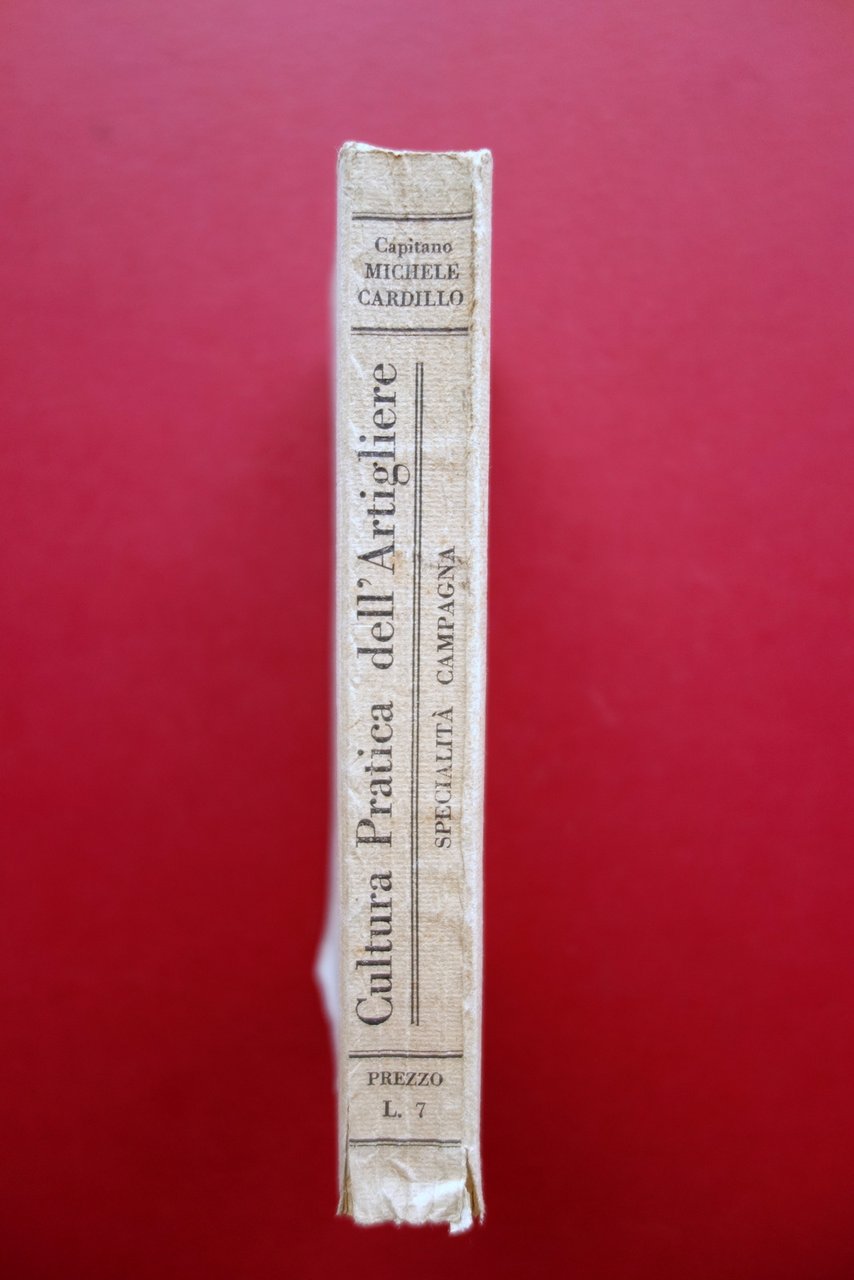 Capitano Michele Cardillo, Cultura pratica dell'Artigliere specialità campagna VI° edizione Sc. Tip. Casa Buoni Fanciulli, Verona, s. d. (primi anni del '900 circa); cm 16x10; pp. XVI-568 con 127 fig. in b/n nel t. (qualcuna a piena pagina); brossura ed. Acclusi cinque brevi fascicoli di aggiunte e varianti al presente volume (vedi foto). Condizioni di conservazione Esemplare in buone condizioni con tracce d'uso e alcune piccole lievi / leggerissime bruniture; cuffia inf. con un paio di minimi strappetti, esemplare saldo e compatto. Interni buoni. Fascicoli anch'essi in buone condizioni con alcune leggere bruniture. Acclusi cinque brevi fascicoli di aggiunte e varianti al presente volumetto. Per un elenco degli argomenti dei fascicoli vedi foto. SETT9.L21250 N P