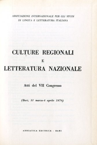 Culture regionali e letteratura nazionale. Atti del VII congresso, 1970