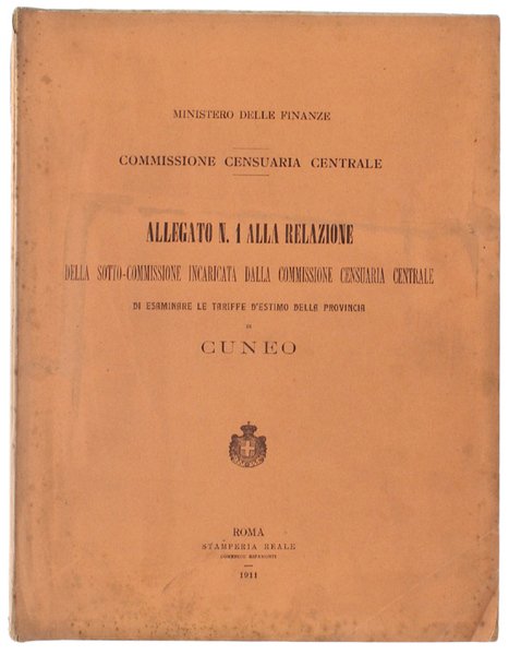 (Codice LO/7304) In 4° (31,5x24 cm) 679 pp. Contiene i prospetti relativi ai 263 comuni della provincia di Cuneo. Grande, corposo volume. Brossura editoriale con ingialliture e macchiette. Interno in ottimo stato. Raro, importante documento originale. ~~~ SPEDIZIONE IN ITALIA SEMPRE TRACCIATA