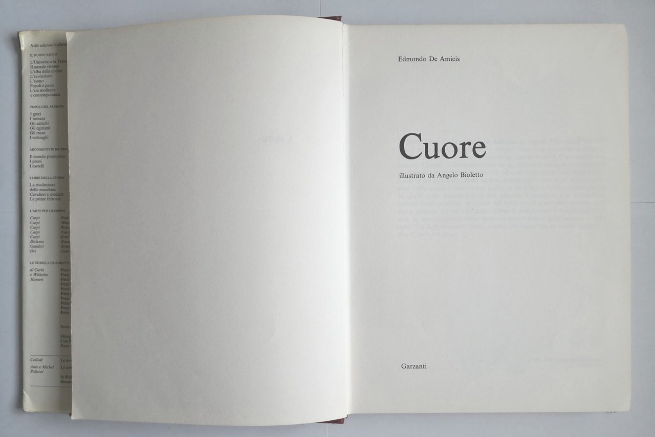 CUORE di Edmondo De Amicis 1982 Garzanti libro illustrato per infanzia Bioletto