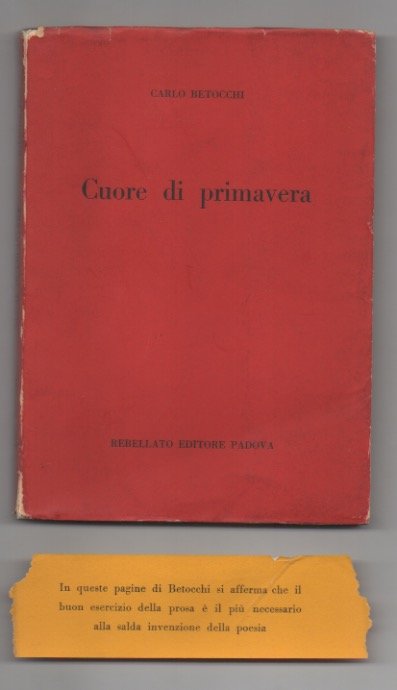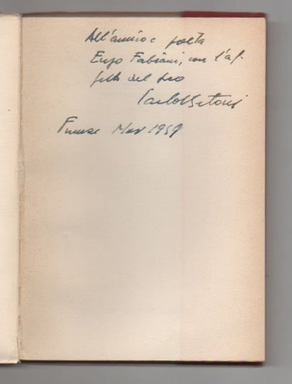LIBROPrima edizione.CON AUTOGRAFO.Marginali tracce del tempo alla sovracoperta, per il resto bell’esemplare completo di frammento frontale della fascetta editoriale, pregiato da dedica autografa dell’autore al poeta milanese Enzo Fabiani.Esordio narrativo di Betocchi.