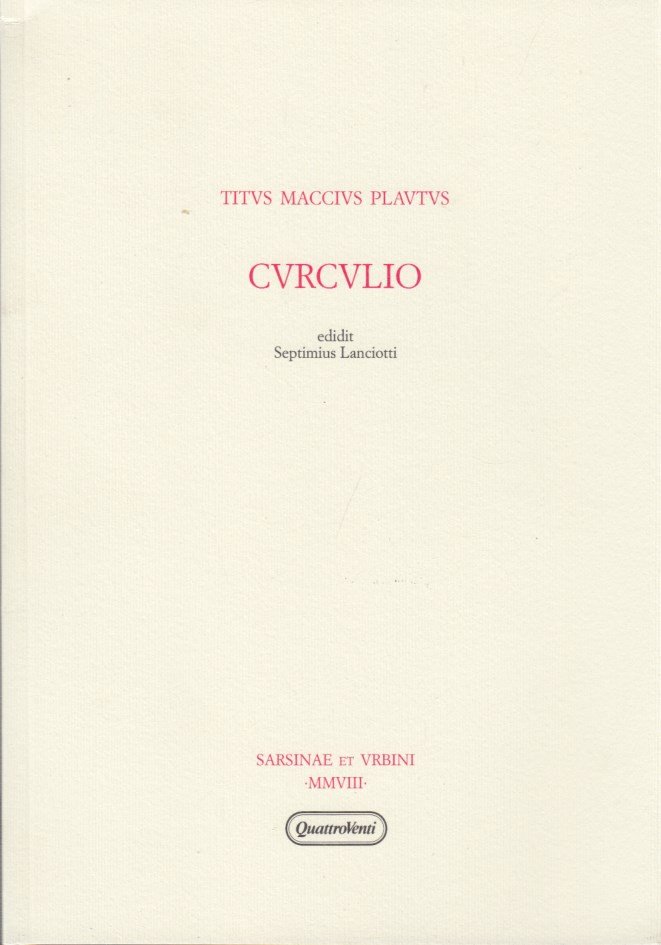 In-8 (Cm 24 x 17), pp. 86, brossura editoriale. Collana Editio Plautina Sarsinatis, VIII. A cura di Septimius Lanciotti. COME NUOVO