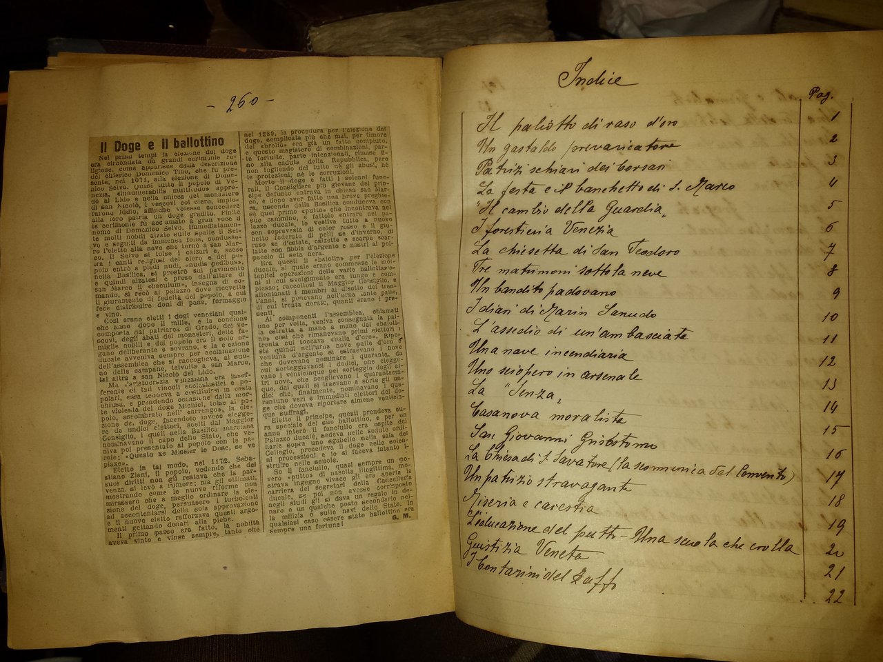 In-4 (25 cm) 260. Piena tela. 260 articoli storici, tratti da quotidiani, raccolti e incollati sulle pagine bianche di un volume.