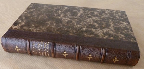Un volume de format in 12 de 2 ff.; 506 pp.; reliure de l' époque en demi chagrin brun; dos à 4 nerfs; décor et titr dorés; couverture conservée. Exemplaire frais; parfaitement relié. Voir photos. Législateurs; Empereurs; arrêts singuliers; bons mots; sortilèges. Réf. Vicaire I; 772.