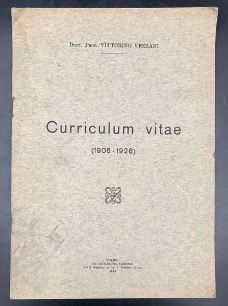 CURRICULUM VITAE (1906-1926) [di Vittorino VEZZANI].
