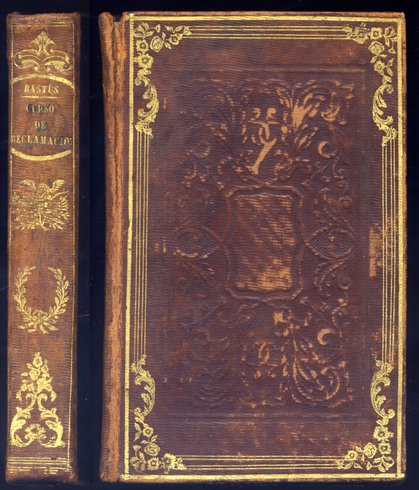 Barcelona, Juan Oliveres, Impresor, 1848. 4to. menor; 3 hs., III-406 pp. Ejemplar con envío autógrafo del autor "A la M.I. Sociedad Apolinea". Encuadernación de época, en piel, con planos gofrados en seco, enmarcados con filetes y motivos florados dorados. Lomera ornada. Cortes jaspeados.