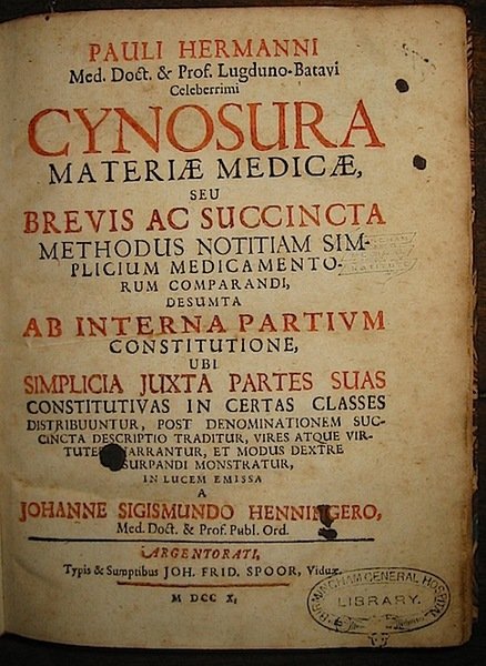 Cynosura materiae medicae, seu brevis ac sucinta methodus notitiam simplicium medicamentorum comparandi.