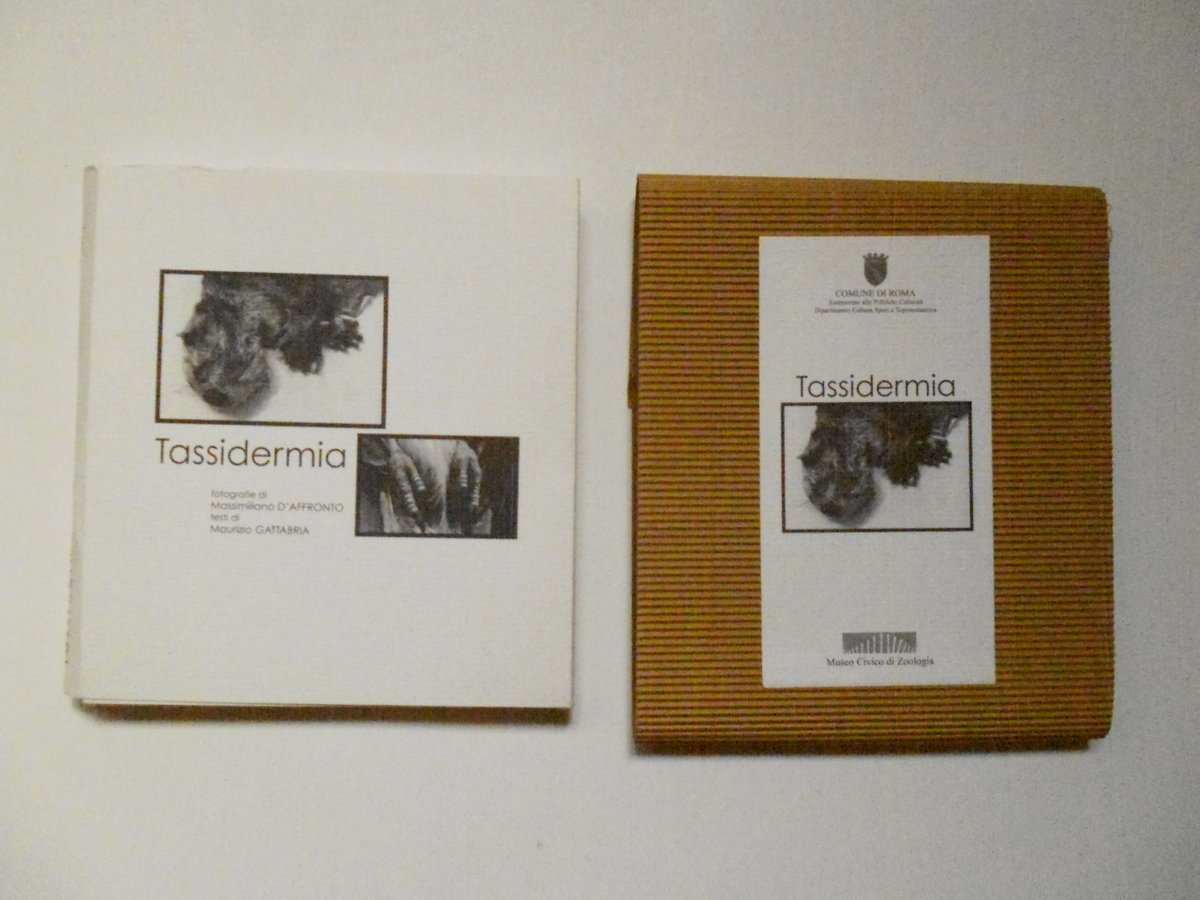 M. D'Affronto, M. Gattabria, Tassidermia Museo Civico di Zoologia, Roma, 2001, cm. 16,5x15; pp. n. n; ill. fotog. n. t. in b. n. Cartoncino edit. ill. in b. n. con sovraccoperta di cartoncino edit. ill. in b. n. Condizioni di conservazione Esemplare in ottimo stato di conservazione. Alcune macchiette e pieghe al dorso. L'intero libro è costituito da un'unica striscia di pagg. ripiegate. SETT174.L20728G