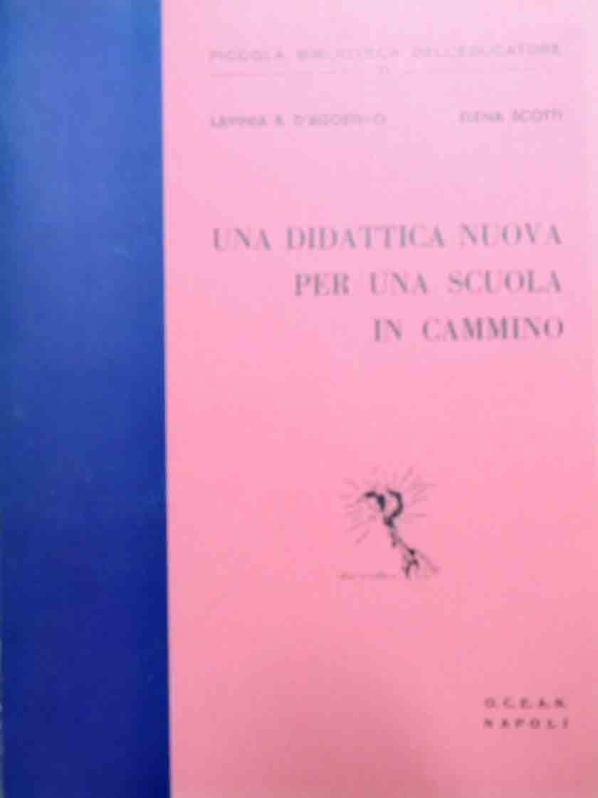 Lavinia B. D’Agostino, Elena Scotti, Una didattica nuova per una scuola in cammino, Editrice O.C.E.A.N., Napoli 1968, pp. 308, ill. b.n., cm 22, br. ed. Collana Piccola biblioteca dell’educatore, n. 2. Minime sgualciture al margine di due carte, lievissima ingiallitura della carta, per il resto perfetto.
